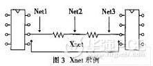 通常把連續(xù)的幾段由無(wú)源元件(電阻,電容或電感)連接的NET合稱為Xnet,如圖3所示。