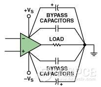 電源端接地:這種方法在大多數(shù)情況下都是最有效的,采用多個并聯(lián)電容器將運算放大器的電源引腳直接接地。一般說來兩個并聯(lián)電容就足夠了——但是增加并聯(lián)電容器可能給某些電路帶來益處。