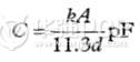 當(dāng)尋找有問題的寄生源時,可能用得著幾個計算上述那些寄生電容尺寸的基本公式。公式(1)是計算平行極板電容器(見圖5)的公式。
