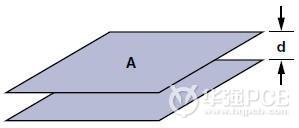 C表示電容值,A表示以cm2為單位的極板面積,k表示PCB材料的相對介電常數(shù),d表示以cm為單位的極板間距離。