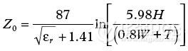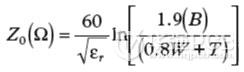 公式(6)可以用于計算一塊FR4板的特征阻抗。