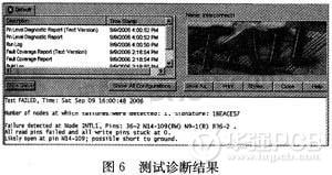 第一階段,本文只對(duì)電路板上的179個(gè)電阻進(jìn)行了建模,測(cè)試得到的與邊界掃描器件引腳相關(guān)的故障覆蓋率為56.78%,沒有檢測(cè)到故障。第二階段,本文在第一階段的基礎(chǔ)上又對(duì)39個(gè)與邊界掃描器件相連的非邊界掃描器件進(jìn)行建模,測(cè)試得到的故障覆蓋率為67.03 %,有了明顯提高,且故障檢出,結(jié)果顯示如圖6所示。