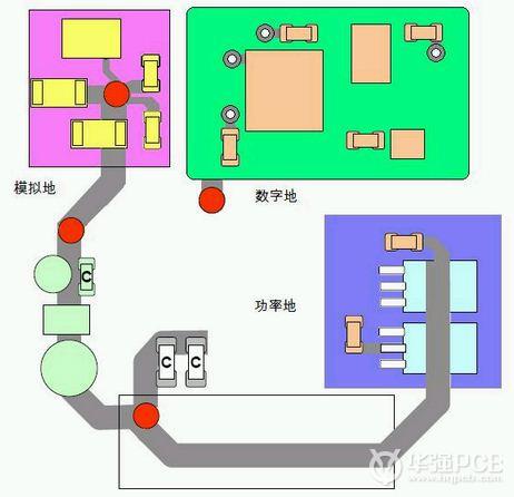 在低頻率、小功率和相同電源層之間,單點(diǎn)接地是最為適宜的,通常應(yīng)用于模擬電路之中;一般采用星型方式進(jìn)行連接降低了可能存在的串聯(lián)阻抗的影響。高頻率的數(shù)字電路就需要并聯(lián)接地了,一般通過(guò)地孔的方式可較為簡(jiǎn)單的處理;一般所有的模塊都會(huì)綜合使用兩種接地方式,采用混合接地的方式完成電路地線與地平面的連接。
