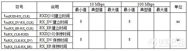 MII接口是最常用的百兆以太網(wǎng)PHY芯片與MAC間的接口,表1和表2分別是某百兆PHY芯片和某MPU內(nèi)部MAC的RX通道時(shí)序參數(shù)表。