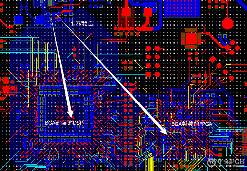 3、多電源系統(tǒng)的布線(xiàn):如FPGA+DSP系統(tǒng)做6層板,一般至少會(huì)有3.3V+1.2V+1.8V+5V。
