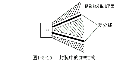 誤區(qū)三:認(rèn)為差分走線一定要靠的很近。讓差分走線靠近無非是為了增強(qiáng)他們的耦合,既可以提高對噪聲的免疫力,還能充分利用磁場的相反極性來抵消對外 界的電磁干擾。雖說這種做法在大多數(shù)情況下是非常有利的,但不是絕對的,如果能保證讓它們得到充分的屏蔽,不受外界干擾,那么我們也就不需要再讓通過彼此 的強(qiáng)耦合達(dá)到抗干擾和抑制EMI的目的了。如何才能保證差分走線具有良好的隔離和屏蔽呢?增大與其它信號走線的間距是最基本的途徑之一,電磁場能量是隨著 距離呈平方關(guān)系遞減的,一般線間距超過4倍線寬時,它們之間的干擾就極其微弱了,基本可以忽略。此外,通過地平面的隔離也可以起到很好的屏蔽作用,這種結(jié) 構(gòu)在高頻的(10G以上)IC封裝PCB設(shè)計中經(jīng)常會用采用,被稱為CPW結(jié)構(gòu),可以保證嚴(yán)格的差分阻抗控制(2Z0),如圖1-8-19。