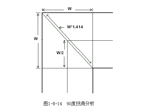 傳輸線的直角帶來的寄生電容可以由下面這個經(jīng)驗公式來計算: