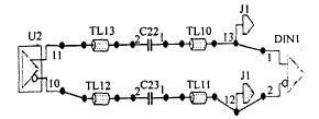 仿真模型的建立在SFP光收發(fā)模塊的原理圖設(shè)計完成后,就要開始進行PCB板的設(shè)計。由于SFP光收發(fā)模塊的工作頻率設(shè)置為1.25Gbit/s,數(shù)據(jù)速率很高,而差分走線的長度很長,因此必須采用微帶傳輸線進行阻抗匹配來減小在源端和終端的反射,從而確保信號的質(zhì)量。根據(jù)原理圖中MAX3748的芯片資料可知,其差分線的單端輸出阻抗為50Ω,而根據(jù)SFP-MSA協(xié)議,主機板上的接口部分即RD+/-端口的差分阻抗為100Ω。根據(jù)差分線的理論,在沒有耦合的情況下,兩根平行的微帶線傳輸線的差分阻抗等于單端阻抗的2倍,因此,必須采用特性阻抗為50Ω的傳輸線來進行匹配。提取MAX3748和接插件J1之間互連網(wǎng)絡(luò)的拓撲如圖2所示。由于J1是接插件,沒有相應(yīng)的IBIS模型數(shù)據(jù)可以調(diào)用,因此為了使得仿真得以進行,在J1處加載一個系統(tǒng)自帶的差分接收端DIN1。并設(shè)置相應(yīng)的工作頻率。