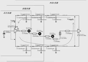電源完整性通常關(guān)心的是工作器件所承受的實際電源電壓波動,即圖3中的Vchip。在實際分析中,系統(tǒng)集成設(shè)計的驗證者無法測到芯片內(nèi)部的電源端口,所以無法觀測到芯片端口的電源波動和地彈噪聲,只能發(fā)現(xiàn)封裝外引腳處測得的電源與地是相當(dāng)穩(wěn)定的。但是,最終決定器件正常工作的電源應(yīng)該是定義在芯片端口的,封裝端口的測量結(jié)果并不能反映出此時的電源完整性狀況。因此,需要芯片廠商提供封裝模型用來對芯片端口處的電源波動及地彈噪聲進(jìn)行仿真。
