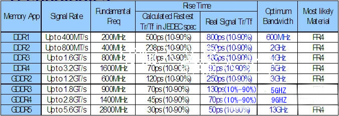 因為Jedec規(guī)范沒有給出最快的上升/下降時間,下表是基于芯片的分析和實際的情況得出的結(jié)果: