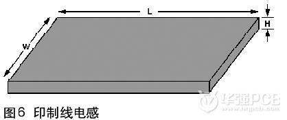 式(2)示出了計算印制線電感(Inductance)的公式。參見圖6。
