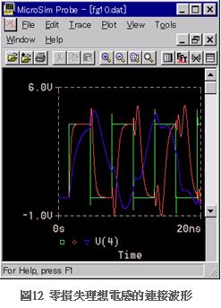 不過噪訊濾波器要求適當(dāng)?shù)膿p失,尤其是連接防止用電感器的損失如果太低時幾乎沒有任何效果。圖12是兩端的反射100%布線,使用零損失理想電感器時的模擬分析連接波形(因為模擬分析可以創(chuàng)造零損失時各種狀態(tài))。