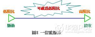 長距離布線時信號線的阻抗會變成信號線的阻抗特性,布線很短時布線兩端的其中一端會受到低阻抗支配,因此可以將布線整體視為低阻抗。信號線的一端為驅(qū)動端,另一端為接收端的設(shè)計相當(dāng)普遍,驅(qū)動端的輸出阻抗很低,接收端的輸出阻抗卻很高,信號線很短的場合,驅(qū)動端的阻抗可以視為低阻抗。