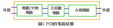 如圖1所示,印刷電路基板內(nèi)的電路可以分成三大類:*電源/大地電路*主信號電路()*接口電路