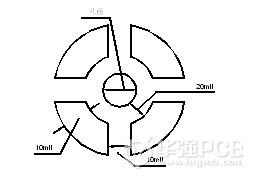 與電源層、地層非連接功能的隔離盤應(yīng)設(shè)計(jì)為如下形狀: