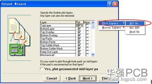 框不要打鉤,因?yàn)榇蜚^輸出的資料是鏡像的,會(huì)導(dǎo)致線路板廠把板的層給做反了)