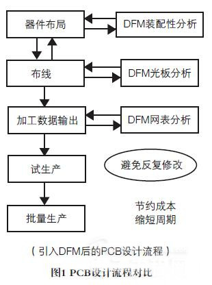 在實(shí)際設(shè)計(jì)生產(chǎn)過程中,我們通過對VALOR軟件Trilogy 5000 DFM功能的應(yīng)用,引入“可制造性設(shè)計(jì)”理念,將產(chǎn)品設(shè)計(jì)質(zhì)量重心前移。在設(shè)計(jì)階段融入制造規(guī)則,建立新的PCB設(shè)計(jì)流程,如圖1所示。以減少設(shè)計(jì)的變更帶來的周期延長,保證生產(chǎn)質(zhì)量和效率。在制造前期解決或發(fā)現(xiàn)所有可能的質(zhì)量隱患,將產(chǎn)品研制的迭代次數(shù)降到最低,減少成本,提高產(chǎn)品的市場競爭力。也使得產(chǎn)品質(zhì)量與所用的設(shè)計(jì)軟件無關(guān),與設(shè)計(jì)人員的水平無關(guān),讓企業(yè)進(jìn)入規(guī)范化管理。