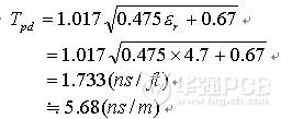 印刷電路板的比誘電率為4.7 時(shí),傳輸延遲時(shí)間 :