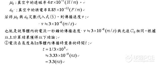 (1)流動(dòng)于導(dǎo)體內(nèi)的電流傳播速度頻率f與該信號(hào)變化1周期T所需要的時(shí)間由下式表示:T =1/f(s)--------------------------(4)流動(dòng)于導(dǎo)體內(nèi)的電流一秒鐘的傳播速度v可由下式表示: