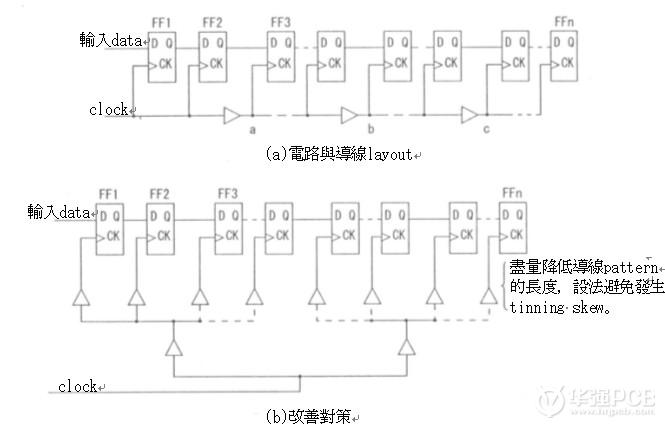 ※改善對策 如圖11(b)所示為了抑制clock之間的信號(hào)傳輸延遲時(shí)間,因此縮短導(dǎo)線的長度以維持set up time與hold time。