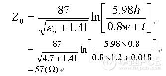如上所述防止反射最佳方法是將信號(hào)源輸入與輸出端的阻抗,與傳輸線路的特性阻抗整合,也就是說在傳輸線路上形成相同的特性阻抗。主要考慮是因?yàn)閺妮敵龅捷斎胫g,一連串的傳輸線路上若有阻抗非連續(xù)點(diǎn)時(shí),該位置便會(huì)產(chǎn)生反射,因此即使頻率有變動(dòng),穩(wěn)定無變動(dòng)的阻抗與輸出入阻抗成為理想的驅(qū)動(dòng)條件。常用的特性阻抗 計(jì)算公式如下:----------------------------(3)