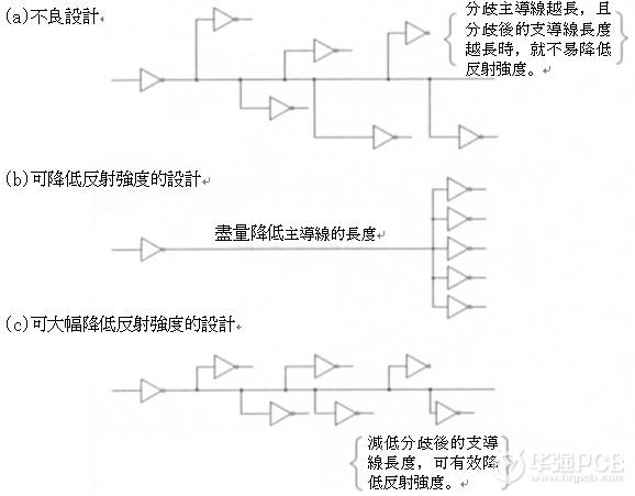 1.利用傳輸線路的長度進(jìn)行導(dǎo)線layout。 2.利用終端方式抑制反射強(qiáng)度。 3.利用導(dǎo)線layout技巧抑制反射強(qiáng)度。