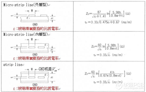圖3 印刷電路板Strip line的特性阻抗Zo ,與傳播延遲時(shí)間 的計(jì)算公式