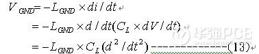 數(shù)字電路的電源與接地流有CMOS貫穿電流與充放電電流等高頻過渡電流,在ground的組件ground一般是用下列式子表示:
