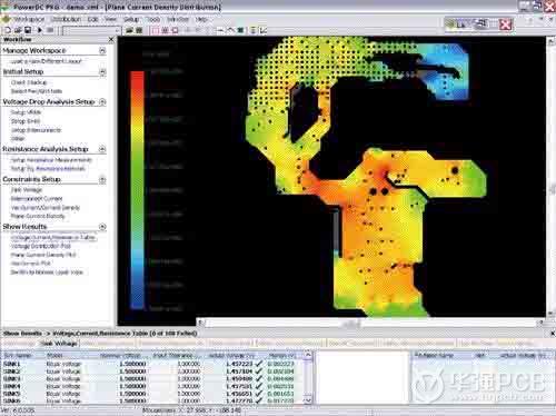 布線工程師、系統(tǒng)工程師、信號完整性工程師和電源設(shè)計工程師還可以將IR壓降分析結(jié)合在約束管理器(constraint manager)中,作為對PCB上每一個電源和地網(wǎng)表進行設(shè)計規(guī)則核查的最終檢驗工具(DRC)。這種通過自動化軟件分析的設(shè)計流程可以避免靠目測,甚至經(jīng)驗所不能發(fā)現(xiàn)的復(fù)雜電源供電系統(tǒng)結(jié)構(gòu)上的布局布線問題。圖2展示了IR壓降分析可以準確地指出一高性能PCB上電源供電系統(tǒng)中關(guān)鍵電壓電流的分布。