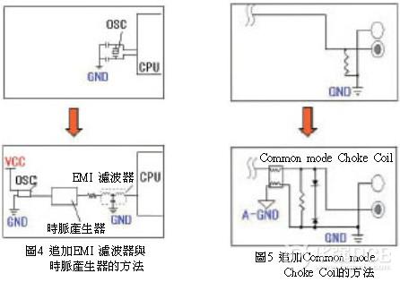 ?CPU的頻率線(Clock Line)追加設置EMI噪訊對策用濾波器(Filter),與頻率產(chǎn)生器(Clock Generator)( 圖4)。