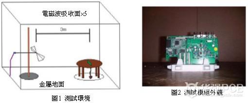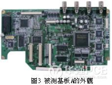 圖3是被測基板A的外觀,該基板為影像處理系統(tǒng)用電路主機板,動作頻率為27MHz與54MHz,電路基板內(nèi)建CPU、Sub CPU、FRASH,以及SDRAM×5、影像數(shù)據(jù)/數(shù)字轉換處理單元、影像輸出入單元,此外被測基板符合「VCCI規(guī)范等級B」的要求,測試上使用相同的電源基板(Board)與變壓器(Adapter)。