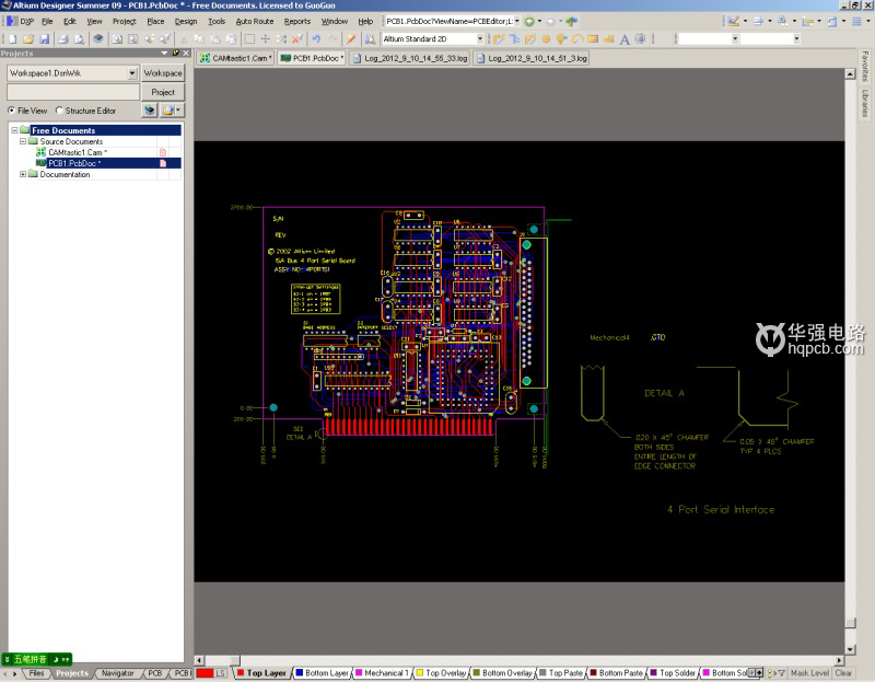 2、通過AD9的File/Import導(dǎo)入其他軟件輸出的Gerber 文件。利用4 Port Serial Interface的例子。