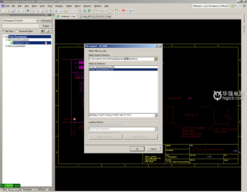 NC Drill 文件在Program Files\Altium Designer 9\ Examples\Tutorials\CAMtastic Imports & Exports\目錄中,它的名字是“4 Port Serial Interface.txt ”。