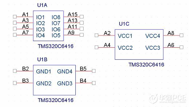 注意這三個Part的元件編號一定要一樣(這里全部是U1),在必要的時候可能需要手動的修改這個元件的編號以達到編號一致。千萬不要搞成了U1A, U2B, U3C。