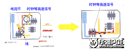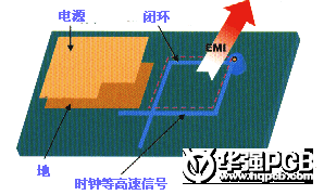 時(shí)鐘信號(hào)等高速信號(hào)網(wǎng)絡(luò),在多層的PCB走線的時(shí)候產(chǎn)生了閉環(huán)的結(jié)果,這樣的閉環(huán)結(jié)果將產(chǎn)生環(huán)形天線,增加EMI的輻射強(qiáng)度。