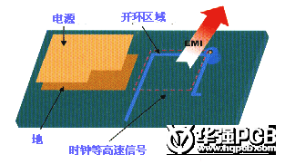 時(shí)鐘信號(hào)等高速信號(hào)網(wǎng)絡(luò),在多層的PCB走線的時(shí)候產(chǎn)生了開環(huán)的結(jié)果,這樣的開環(huán)結(jié)果將產(chǎn)生線形天線,增加EMI的輻射強(qiáng)度。在設(shè)計(jì)中我們也要避免。