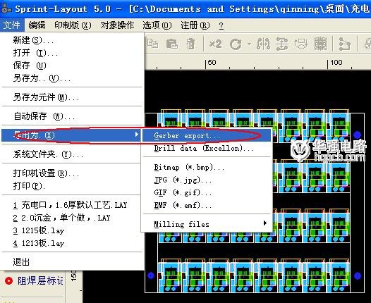 9001SP-Layout50 轉(zhuǎn)換 GERBER 格1 :用SP-Layout50 打開要生成Gerber的PCB設(shè)計文件,在文件導(dǎo)出為Gerber export 子菜單下。